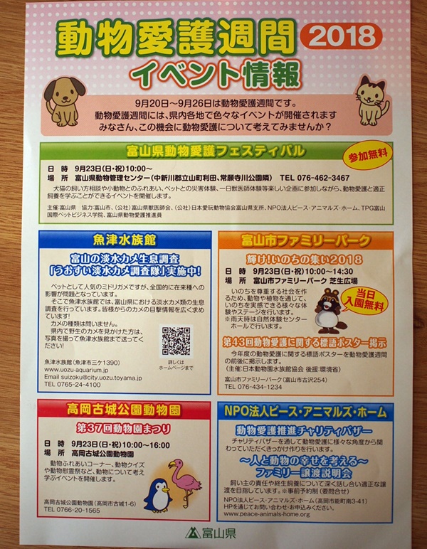 9月20日(木)~9月26日(水)は動物愛護週間です。