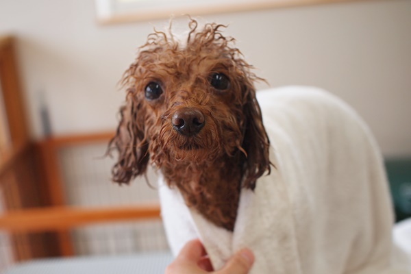 レオちゃん、シャンプーもブローもとってもお利口です。