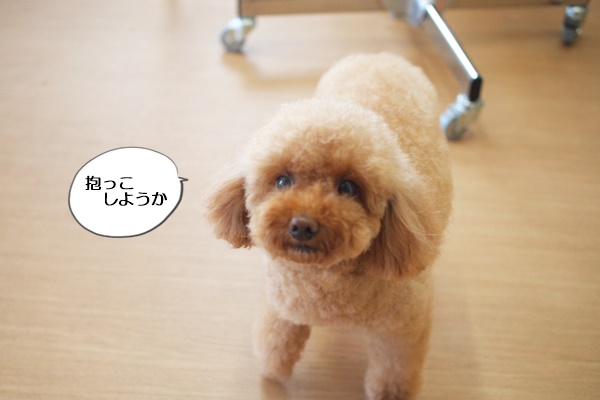 モコちゃんは、しゃがんで「おいで」と言うと、飛び乗ってきてくれます。