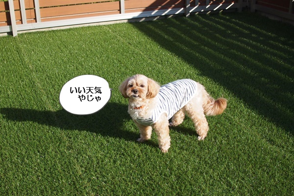 洗濯物を干す時、愛犬コニーも一緒に庭に出ました。