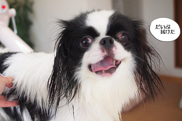 お顔も自分でタオルで拭いてくれたので、随分乾きました。
