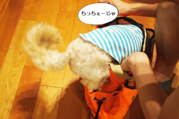 明らかに体格に合っていないバッグですが、どうしても入りたいみたい。