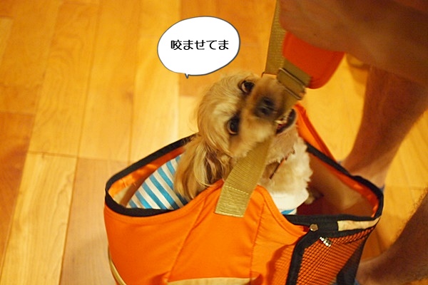 バッグを持ち上げても、ひたすら咬み続けてました。