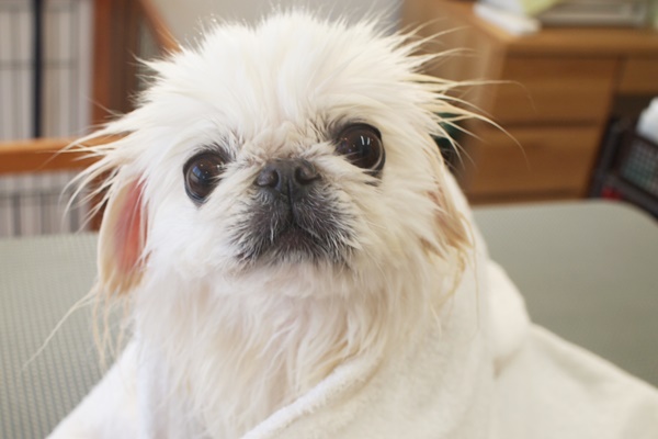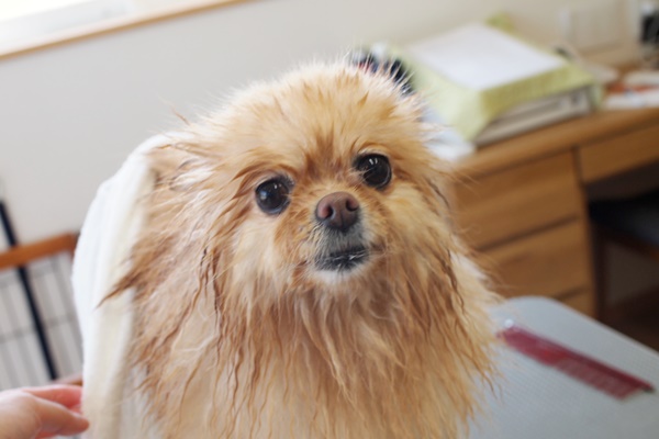 トリミングが終わって、やっと入れた時の満足げな顔。