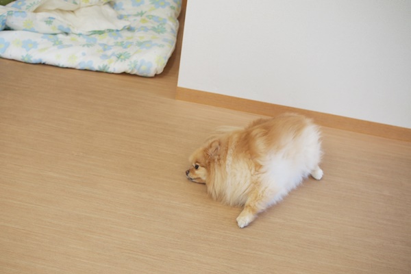 モコちゃんを下に降ろすと、まるちゃんが起床。