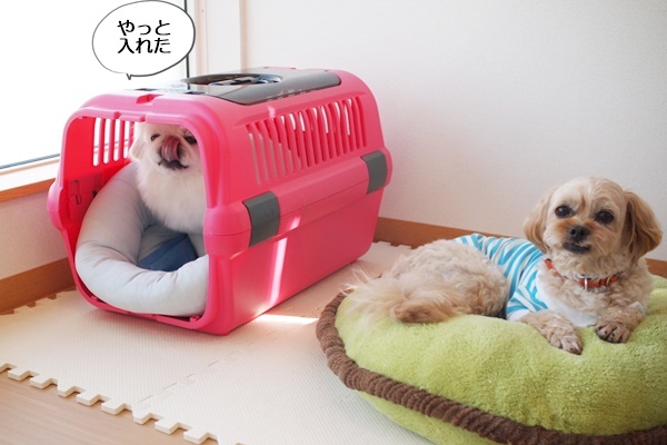 愛犬コニーは、なぜかキャリーバッグを見せると興奮し始めます。