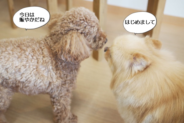 チョコちゃん&モコちゃんは、お互いに興味もあるみたいで、ニオイを嗅ぎ合っていましたよ。