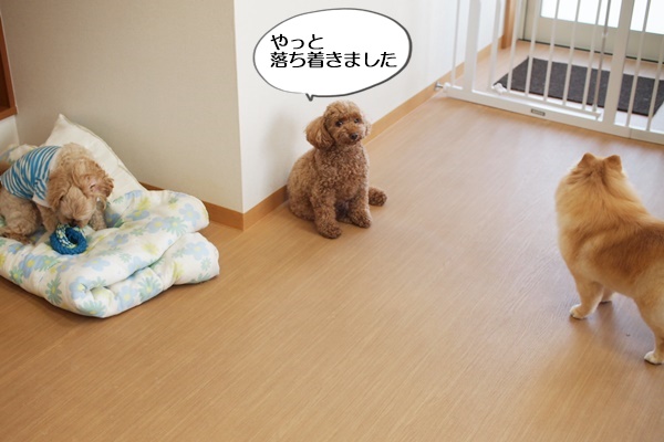 カット後に、モコちゃんを下に降ろすと、やっぱりまるちゃんが起床。