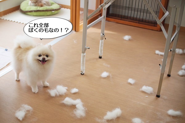 もっとふわふわな毛の子だと、こんなにまとまって落ちません。