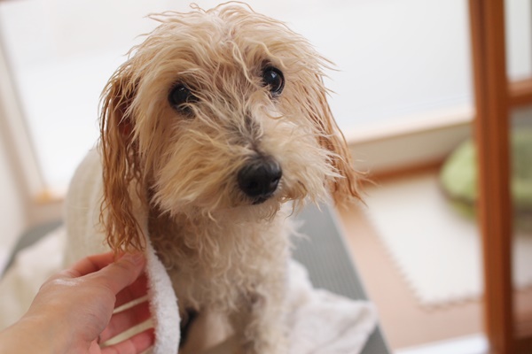 レオちゃん、シャンプー後の写真なのに濡れているように見えない(笑)。