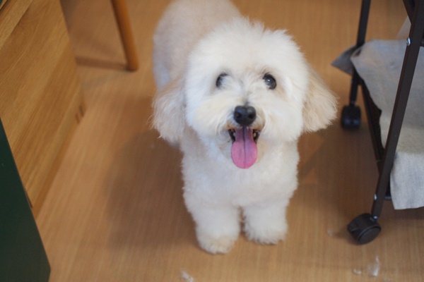 私の頭にレオちゃんの毛がたくさん積もった頃、ようやくブロー終了。