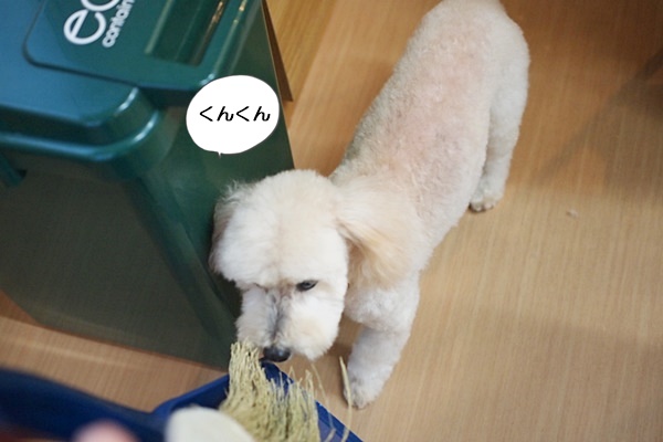 ブラシに付いた毛を取ってポイッと落としているので、毛の塊が散乱してます。