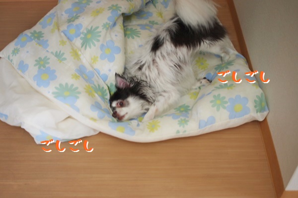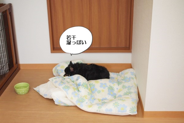 ヤマトちゃんは濡れた所を避けて寝てました。