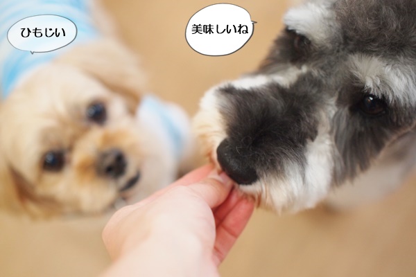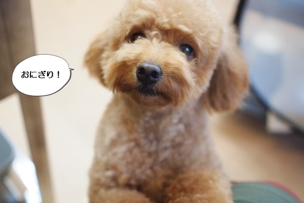 おにぎりをほおばっていると、ももちゃんがおねだりに来ました。