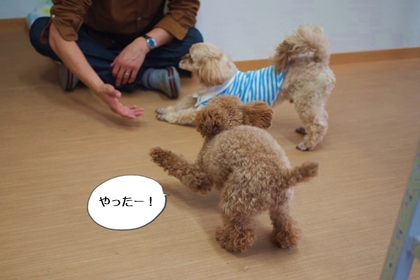 ウィンちゃんは、早速おもちゃを見つけてしまって、しばらく遊んでからのスタートです。