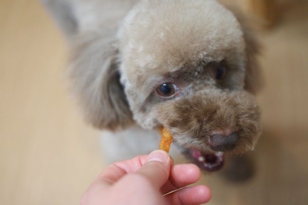 前歯を触られるのを嫌がりますが、食べかすを取る時は比較的お利口に頑張ってくれます。
