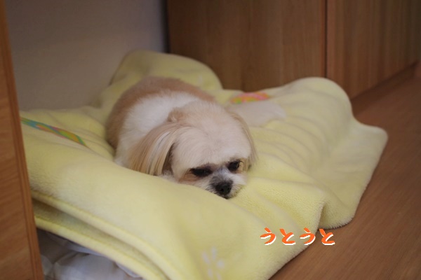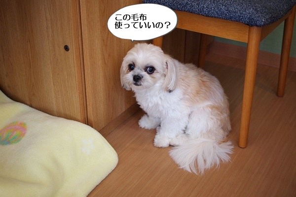 「床の上でいいの」と、しばらく毛布を遠慮していました。