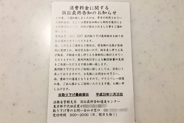 訴訟がどうのとか、最終告知がどうのとか、急に言われると慌てますよね。