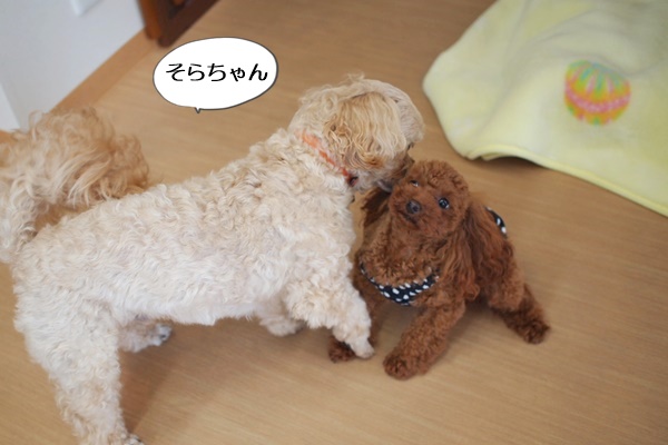 看板犬コニーとそらちゃんは、気持ち悪いくらい仲良しです(笑)。