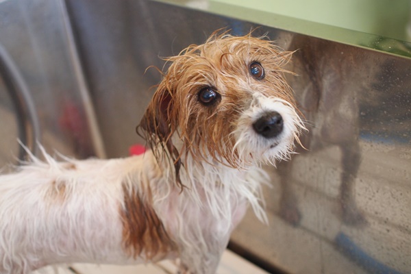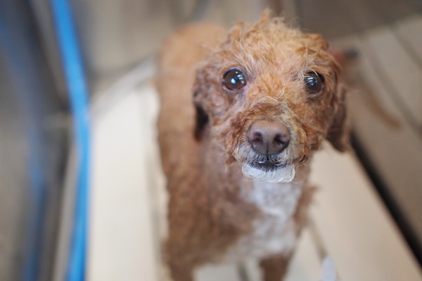 モコちゃん、毛が濡れて、どえらいスリムになっちゃったね。