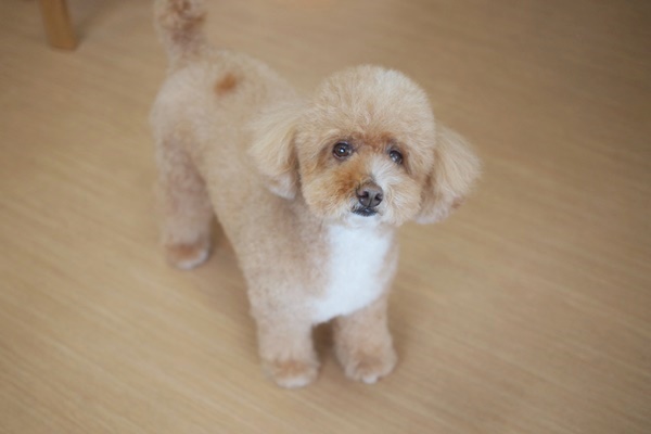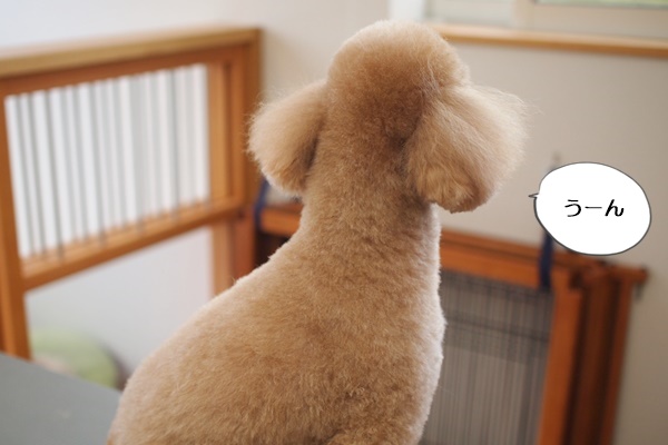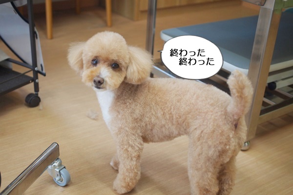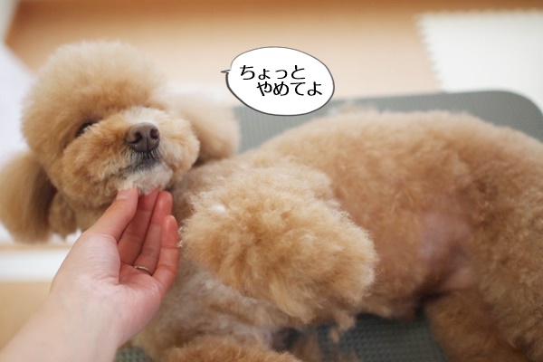 モコちゃんは、お顔のカットをする時、徐々に体勢が崩れてきて、気付くとこんな格好に。