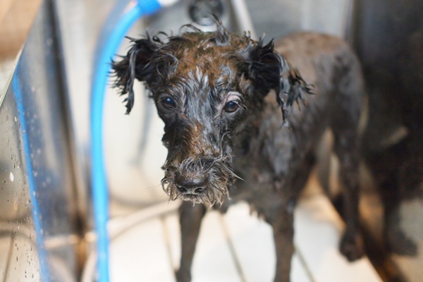 お湯が掛からなくても、お湯がホースから出るだけで嫌がるくらい苦手。