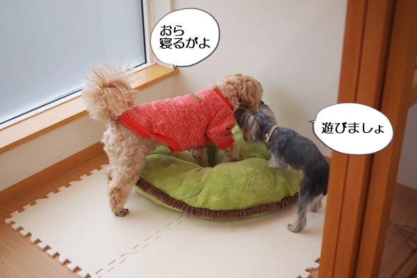 恐いもの知らずのリルちゃんは、眠たいコニーを遊びに誘ってました。