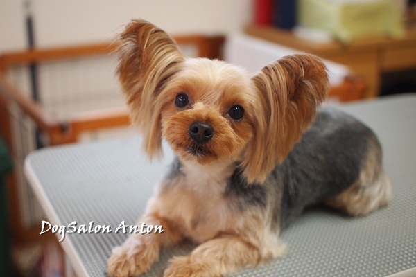 トリミングテーブルの上でじっとしているのが苦手でしたが、徐々にできるようになってきました。