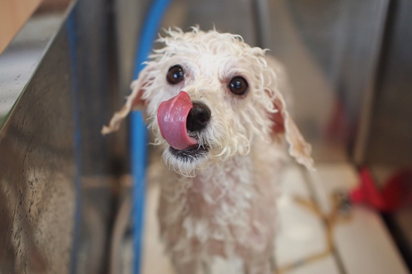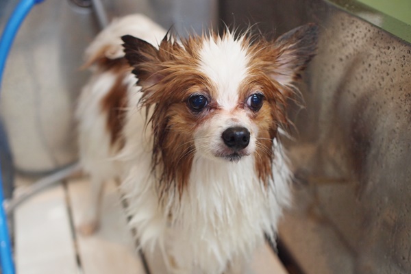 見られていても大人しい子と、見られていると飼い主さんの元に行きたくてシャンプーどころじゃなくなる子と、両極端な気がします。
