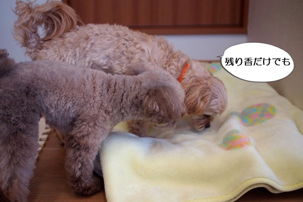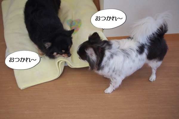 シャンプーブローが終わると、お互いのニオイを嗅ぎ合ってました。