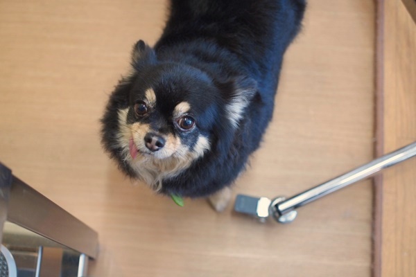 下でクンクン言っているライチちゃん。