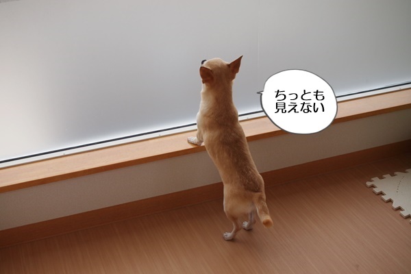 外の様子を見ようとするものの、全然身長が足りません(笑)。