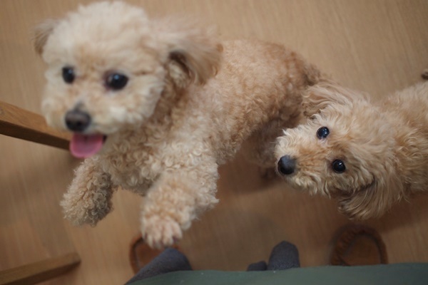朝一で来てくれたのは、トイプードルのあんずちゃんとこころちゃん。