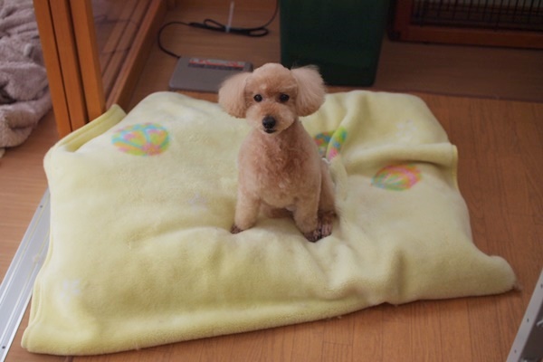 今日は、ぐんと冷えている気がして、毛布をホットカーペットの上に。