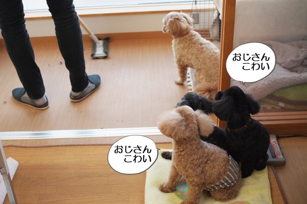 主人に対して3頭とも警戒心があるのか、主人がいる時はレアンちゃんもキィーちゃんも私の側に来てくれます。