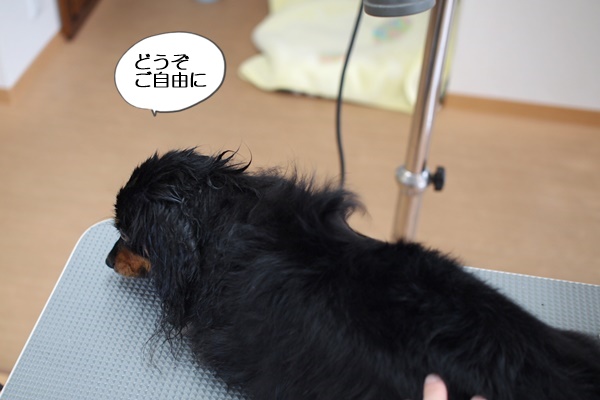 上の写真のように、伏せてじっとしてくれるので風は当てやすい、けど乾きにくいんですよね。