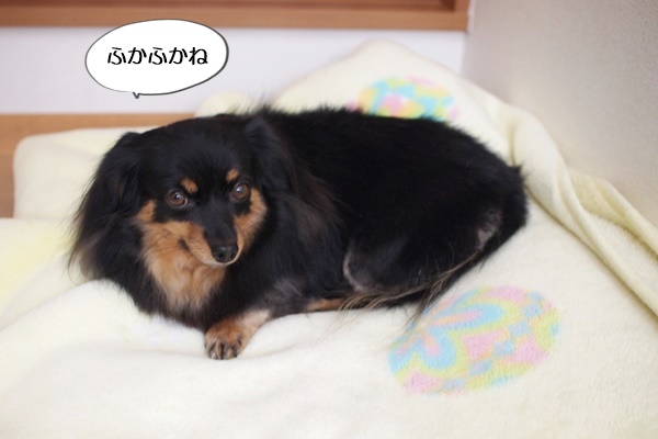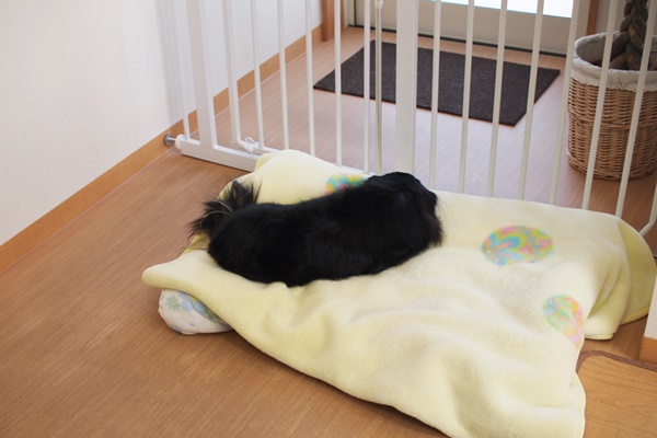 いつもならすぐに入口の方に行くのですが、しばらくは毛布の上で休んでいました。