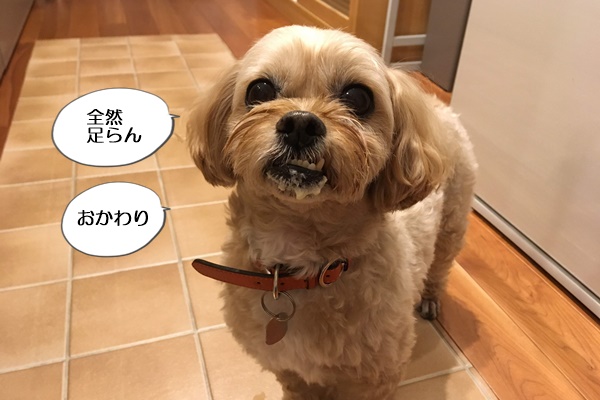 なので、手作り食でべちゃべちゃなごはんを食べている愛犬コニーは、いつもごはんの後はこんな感じになります(笑)。