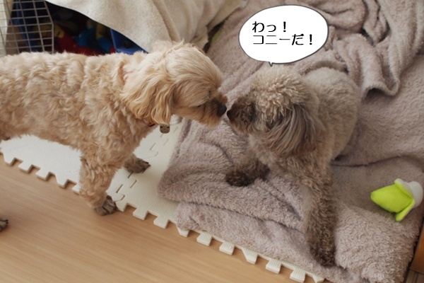 仕方なくコニーのおもちゃで遊んでいると、コニーが目覚めました。