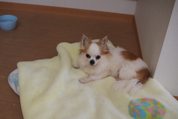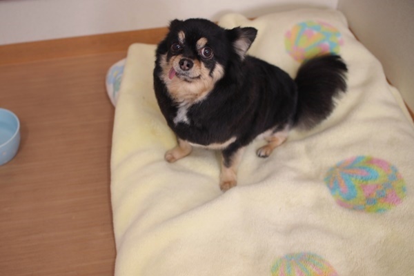お迎えまでの時間、ヤマトちゃんはずっとこの毛布の上でゴロゴロ過ごしていましたよ。