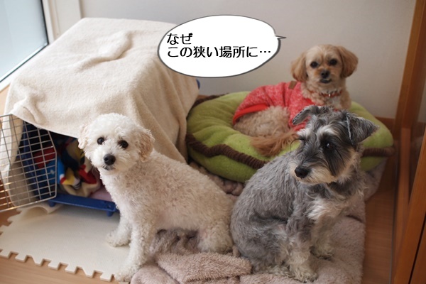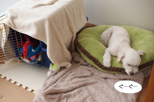 ゴンちゃんのトリミング中、福ちゃんとマハロちゃんは、それぞれお休み中。