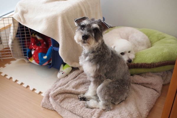 ミニチュアシュナウザーの福ちゃん&トイプードルのマハロちゃん