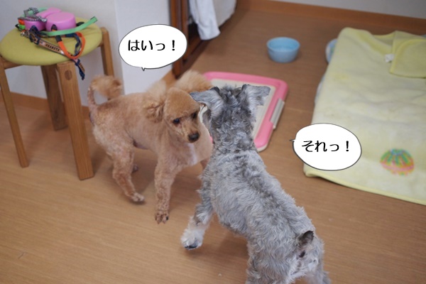 激しく遊んでみたいけど、どうしたらいいのか分からない様子でした。