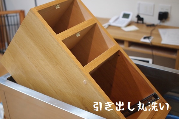 引き出しは木製だから下の方からじわじわとしみて、横にあったマットの下にまで漏れてしまったというわけです。