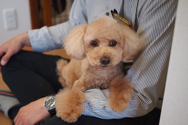 続いて、トイプードルのまろんちゃんが来てくれました。