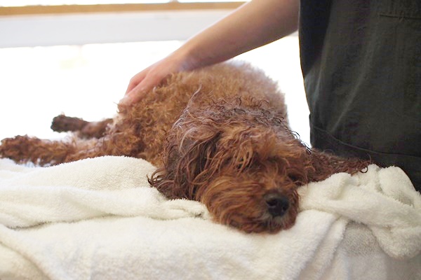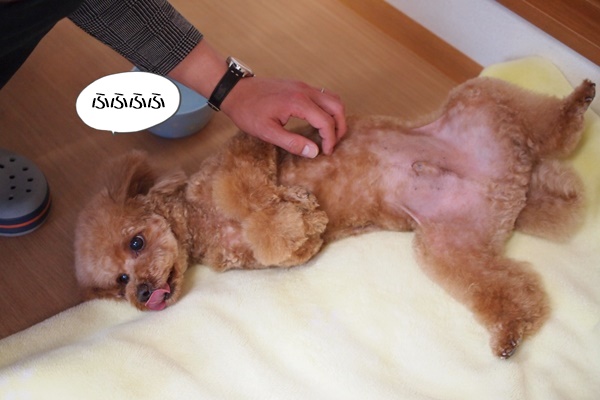 いつもよりもトリミングの間隔が空いたので、肛門腺が溜まっていたからかな。