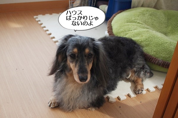 マーブルちゃんとジニーちゃんは、同じお家で同じ犬種なのに、ハウスに入るのはマーブルちゃんだけ。