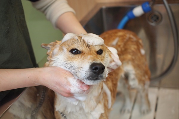 柴犬をこんなに泡だらけにしても嫌がらないのはスゴイことです。