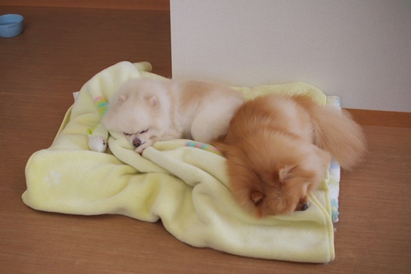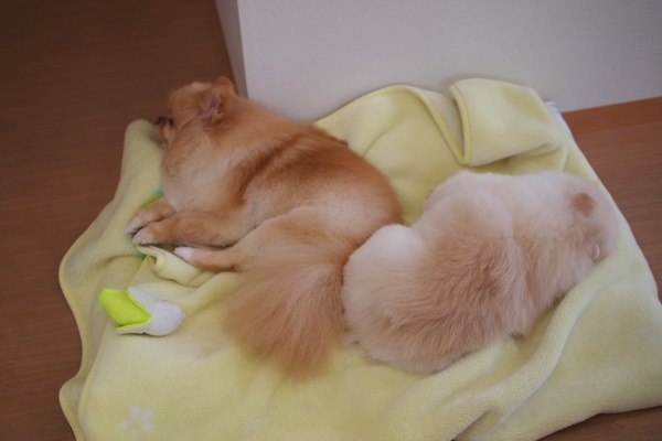 天使のように一緒に寝ているレオちゃん&モコちゃん。