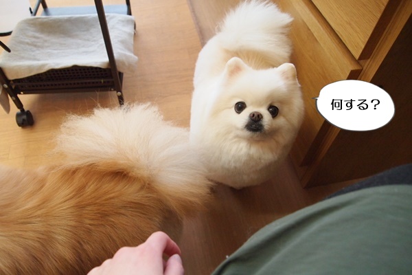 ソラちゃんもモコちゃんも、ハウスや毛布で落ち着いてしまったので、レオちゃんからスタート。